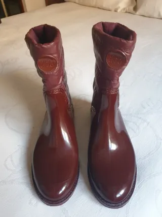Botas de agua de la marca GIOSEPPO en color granate.Casi nuevas.Puestas en tres ocasiones. - Diseño acolchado en la parte superior. - Detalle de logo circular en la caña. - Suela de goma con relieve.