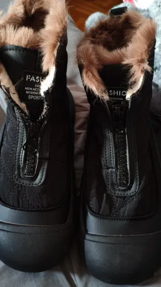 Botas muy calentitas, son de piel y están forradas por dentro con pelo de conejo. Garantizó que no pasareis frío con ellas. Muy cómodas. Es una marca de calidad Ara. Repelentes al agua. Precio nuevas: 139,99€ Talla 38,5 yo uso el 39 normalmente y me van muy bien. Doble plantilla una de pelo muy calentita y quitándola hay otra de cuero.