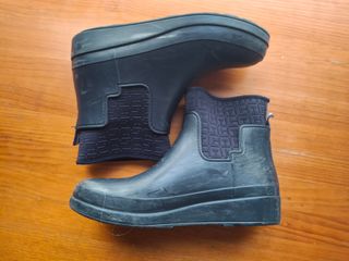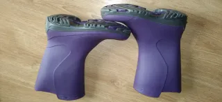 botas de agua, ideales para días de lluvia o barro. Han sido usadas solo un par de veces. - Talla 35-36.moradas - Talla 37-38. Negras 5 eur por cada par de botas Muy poco uso, 2 veces.Ya no nos sirven por talla. En foto no están limpias de llevar tiempo guardadas en un garaje, pero están nuevas