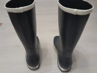 Botas de agua para niño talla 38 de la marca Tribord. Son nuevas y están en perfecto estado. Solo tienen un único uso. - Color azul marino con detalles blancos. - Suela blanca. - Borde superior blanco.