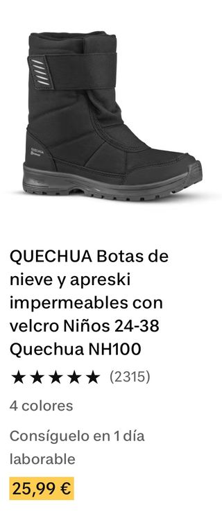 Botas de nieve y apreski impermeables para niños. - Cierre con velcro. - Tallas disponibles: 24-38. - Modelo Quechua NH100. - Disponibles en 4 colores. - Entrega en 1 día laborable.