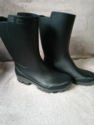 Botas de agua de color verde, perfectas para días lluviosos. Su diseño alto para protección eficaz. Uso practicamente nulo. - Suela de goma con buen agarre. - Material resistente al agua.