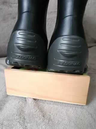 Botas de goma para niño de la marca Solognac - Color negro. - Diseño alto. - Suela con buen agarre. Talla 35-36. Ligeras.