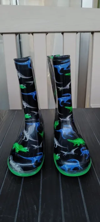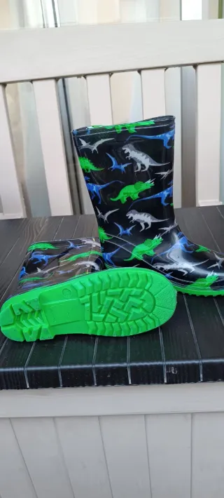 Botas de agua para niño con un divertido estampado de dinosaurios. Perfectas para días de lluvia. - Talla 30-32. - Diseño multicolor con dinosaurios. - Suela de goma.
