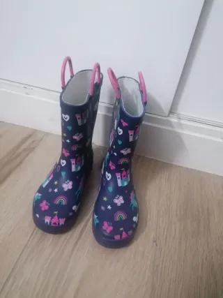Botas de agua para niña en talla 29. Perfectas para días lluviosos. - Diseño divertido y práctico. - Material resistente al agua.