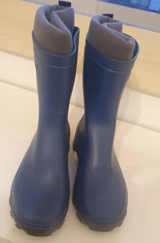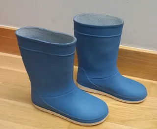 Botas de agua Dunlop para niño en color azul. Perfectas para días de lluvia. Muy poco uso. - Cierre con cordón ajustable. - Forro interior de tela. - Suela de goma antideslizante. - Talla 31 FAQ Sigue disponible? Si Le puedes rebajar el precio? No Lo puedo pasar buscando? No, solo se entrega por correo. Quedamos en una boca de metro? No Esta en buen estado? Si Lo vendes por partes? No Cuando lo puedes enviar? Hoy o a más tardar el siguiente día hábil. Me das tu número de whatsapp? No Puedes pasarme mas fotos? No Aceptarías un intercambio/trueque? No Hola? Hola