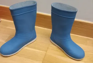 Botas de agua para niños aproximadamente talla 31-32, la suela mide 21cm. En la bota no sale en número por lo que no puedo asegurar que talla es. Perfectas para días de lluvia. - Diseño alto. - Suela de goma.