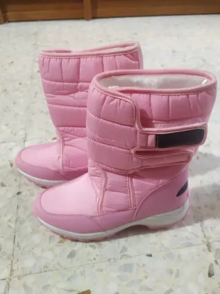 Botas de nieve para niña, diseñadas para mantener los pies calientes y secos en climas fríos. Nunca usados. En la etiqueta se pone que la talla es un 37 pero en realidad no lo es, se queda muy pequeña, creo que es un 35 o 35.5. Precio negociable. - Exterior resistente al agua. - Forro interior suave y cálido. - Suela antideslizante para mayor seguridad.