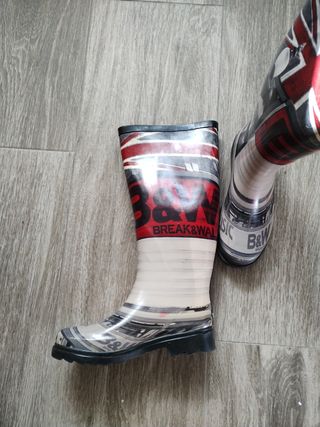 -> botas de agua mujer -> break&Walk,b&w,breakwalk -> diseño con estampado de texto -> talla o numero : 36 -> nuevas a estrenar -> precio en tienda 70 euros -> se hacen envios.