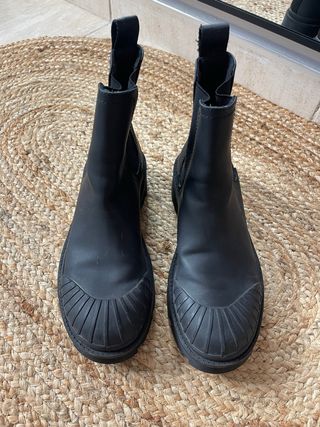 Botas de agua de Zara, un modelo muy buscado y que se agotaron rápidamente fueron virales , puestas 2 veces . Valieron 70 euros - Diseño tipo chelsea. - Suela gruesa y dentada. - Detalle elástico en los laterales.