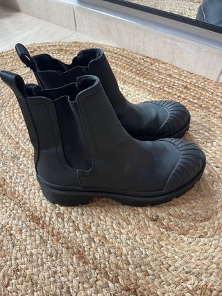 Botas Chelsea de Zara, talla 39. Son de color negro y parecen estar en buen estado. - Material: goma - Estilo: Chelsea.