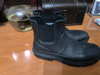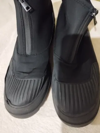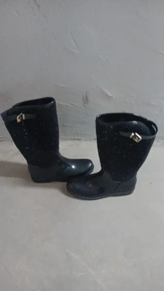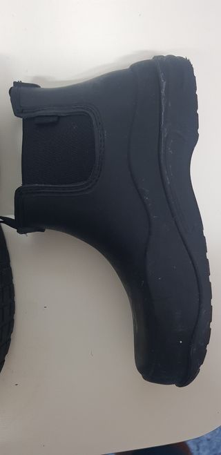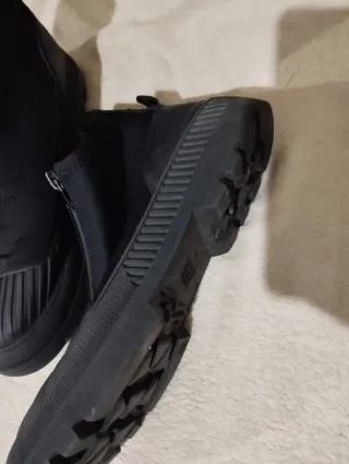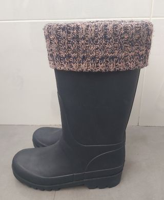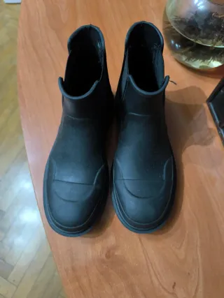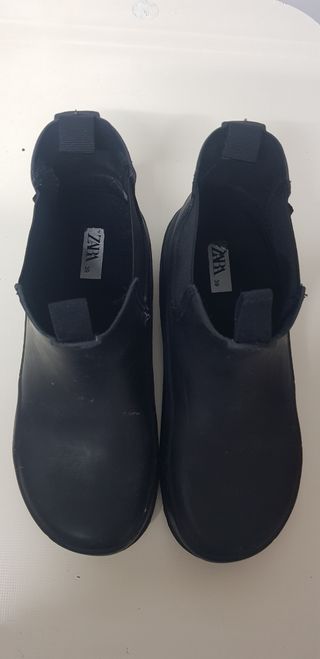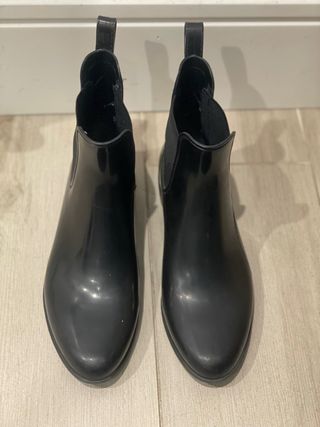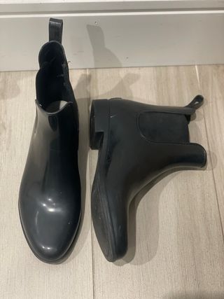 Botas de agua de Zara, perfectas para días lluviosos. Su diseño es moderno y funcional. Puestas una vez el invierno pasado, tengo problema en el pie izquierdo que me impide usarlas - Caña corta. - Detalle elástico lateral. - Suela gruesa.