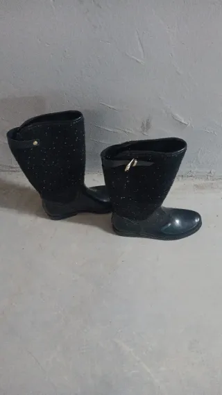 Botas de agua altas con un diseño moderno y práctico. - Cierre de cordones para un ajuste seguro. - Material de goma resistente. Tengo 3: Estás, las verdes, 15€ Azul marino con detalles cremallera en rosa fucsia 25€ Y unas nuevas de zara a estrenar, 30€