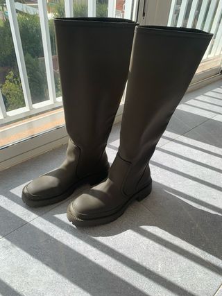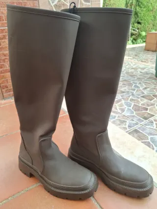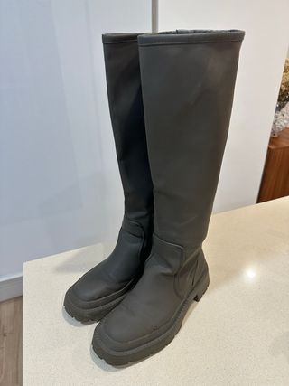 Botas de goma altas de la marca Zara. Caña alta or debajo de la rodilla. - Diseño liso. - Suela gruesa.