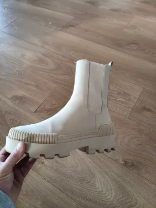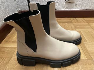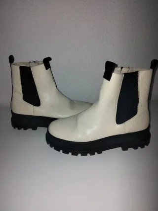 Botas de agua de la marca Zara en color beige, talla 29. - Diseño moderno con suela gruesa. - Detalle elástico en los laterales para facilitar su puesta.