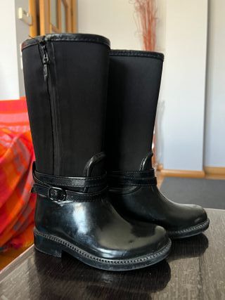 Botas de agua para niña de la marca Zara, en color negro. Se encuentran en muy buen estado. - Diseño alto hasta la rodilla. - Suela de goma antideslizante.