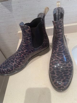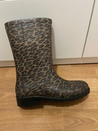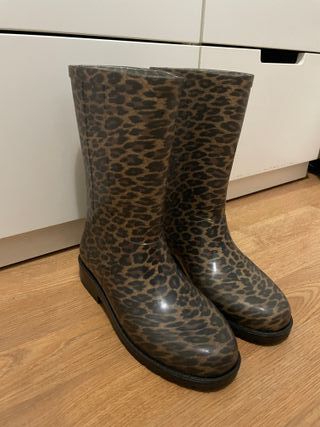 Botas de agua muy originales con estampado de leopardo pero discreto, en tonos oscuros. Talla 35, perfecto estado de Zara.