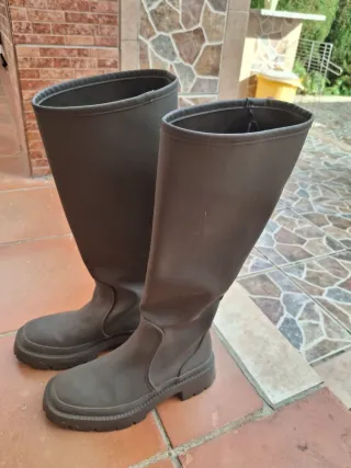 Botas de agua altas de Zara con suela gruesa. - Diseño moderno y cómodo. - Perfectas para días de lluvia.