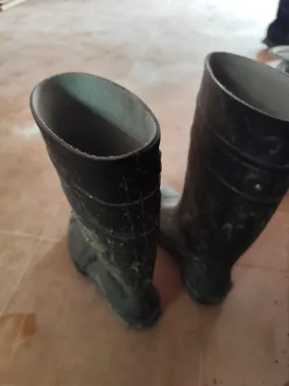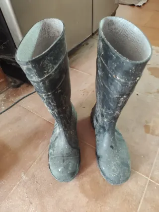Botas de agua negras, parecen estar en buen estado. - Son dos botas. - Ideales para días lluviosos.