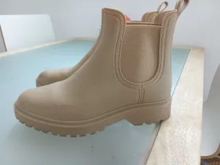 Botas de agua Zara en color beige. - Diseño tipo botín. - Detalle de elástico lateral.