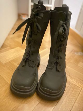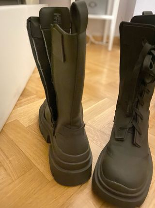 botas verdes de goma de Zara. con cremallera y cordones. muy comodos. talla 40