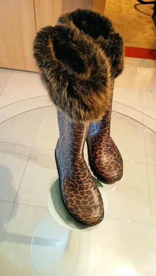 Botas de agua para mujer con un llamativo estampado de leopardo y un suave forro de pelo. - Diseño de caña alta. - Detalle de pelo en la parte superior. - Estampado de leopardo. - Talla 36.