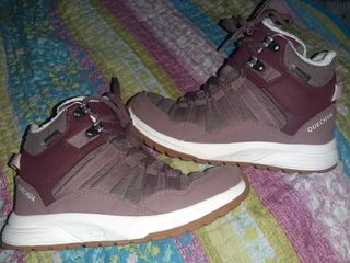 Calzado de trekking Quechua número 36, ideales para tus aventuras. Son negras y azules, resistentes al agua, estan en buen estado como se puede ver en las fotos: suela y las plantillas. - Diseño ligero y cómodo. - Suela resistente para una buena tracción.