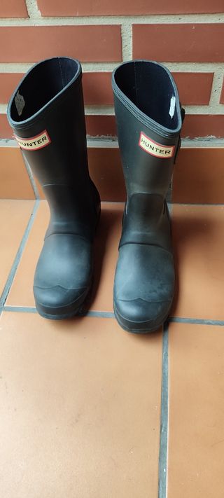 Botas de caña alta con tejido impermeable. Perfectas para mantener los pies secos y calientes. - Material exterior de goma y tejido. - Forro interior suave y cálido. - Cierre con cordones para un ajuste seguro. - Suela antideslizante para mayor tracción. Con borreguito en el interior Muy cómodas y calentitas Puestas dos veces. Prácticamente nuevas
