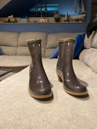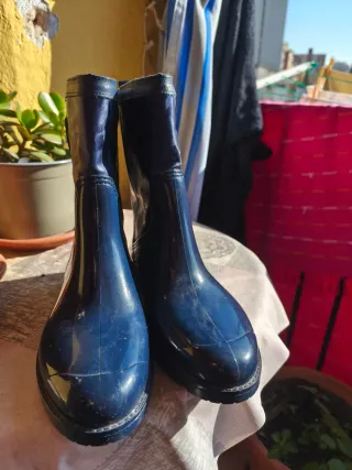 Botas de agua para proteger tus pies de la lluvia y el barro. Son cómodas y prácticas. - Parte superior textil. - Suela de goma. La azul 5 eur i la custo 15 eur