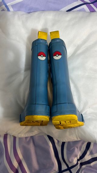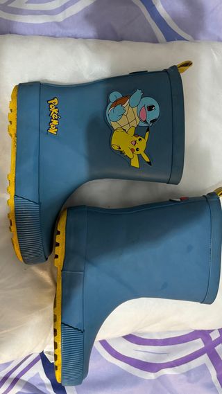 Botas de agua infantiles con diseño de Pokémon. Talla 27 - Color azul con detalles amarillos. - Estampado de Poké Ball en cada bota. - Tiradores amarillos en la parte superior para facilitar su puesta.