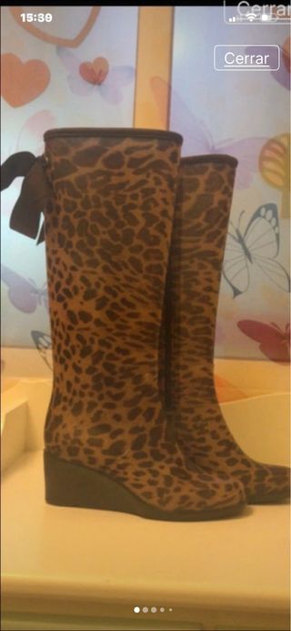 Botas de agua con un llamativo estampado de leopardo. - Diseño de caña alta. - Detalle de lazo en la parte superior. - Suela de cuña.