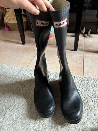 Botas de agua Hunter en color negro. Goma rajada en una bota, adjunto imágenes!!