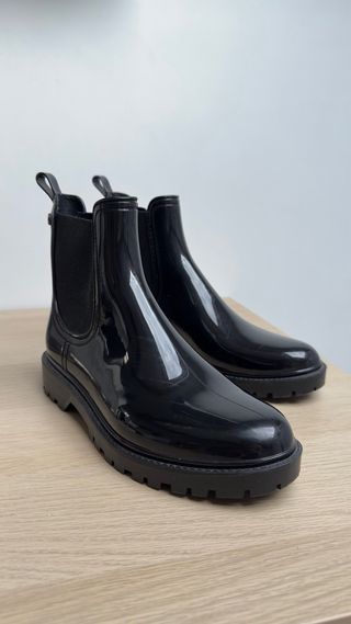 Botas de agua de estilo Chelsea, perfectas para días lluviosos. - Diseño brillante. - Paneles elásticos laterales. - Detalle metálico en el talón.