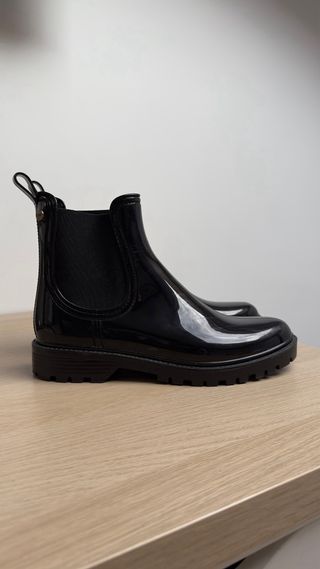 Botas de agua estilo Chelsea, perfectas para días lluviosos. Vienen con su caja original. - Diseño moderno y práctico. - Cierre elástico lateral.