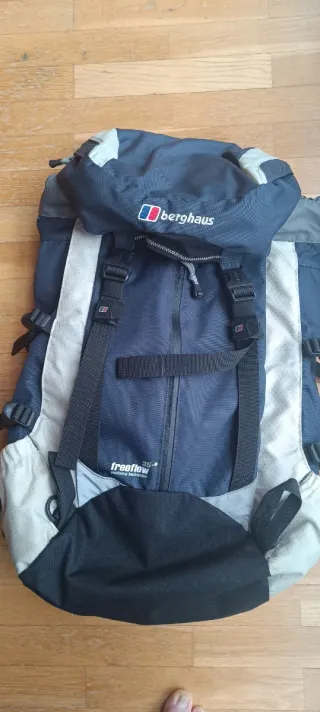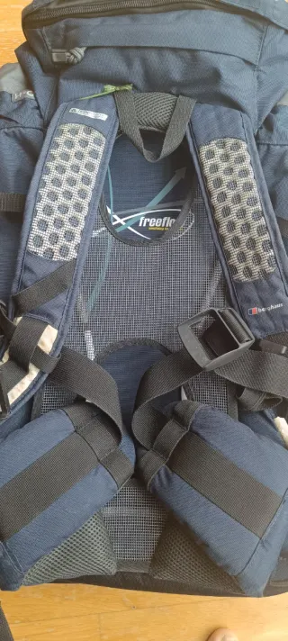 Mochila de 35+8 litros de capacidad Bolsillo frontal grande + dos laterales, todos con cremallera 2 bolsos laterales de malla para botes de agua 2 cintas de compresión en cada lado Bolso exterior en tapa con doble cremallera, y otro en Interior de tapa Hueco para vejiga de hidratación Bolsa impermeable en hueco con cremallera en parte trasera bajo la tapa Dos portabastones/piolets Tirantes transpirables Muy poco uso Manchados de tierra los huevos para bidones de agua, pero ya que no son demasiado visibles, no la he querido lavar por no deteriorar el material