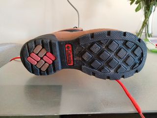 Botas montaña Talla 43 buen estado salvo que la puntera se desempega en una. Botas de montaña RDX en talla 43. Se encuentran en buen estado general, con el detalle visible en la puntera de una de ellas. - Diseño robusto para senderismo. - Combinación de colores marrón y beige.