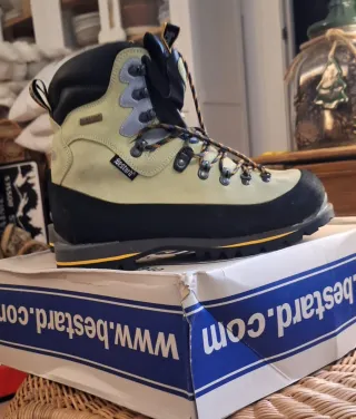 Botas de alta montaña Bestard con Gore-Tex y cramponables. Perfectas para nieve y actividades en la montaña. - Membrana Gore-Tex para impermeabilidad y transpirabilidad. - Suela de goma resistente para un buen agarre. Con taco-cuerda antideslizante. - Cierre con cordones para un ajuste seguro. Muy poco uso, estan casi nuevas. Made in Spain.