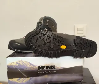 Botas de montaña Meindl en tonos grises y negros. Perfectas para senderismo, trekking y actividades al aire libre. - Diseño robusto y duradero. - Cierre con cordones. - Suela antideslizante.