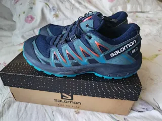 Zapatillas de montaña Salomon en perfecto estado. Ideales para senderismo y actividades al aire libre. - Color azul y verde. - Cierre rápido con cordones. - Suela de goma para un buen agarre.