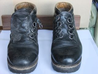 Botas de montaña de cuero, perfectas para senderismo o uso diario. - Material exterior de cuero. - Cierre con cordones. - Suela de goma resistente. Las primeras negras 20 E. Las segundas negras 10 E. Las marron y grises 22 E. Las marron y rojas 35 E.