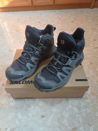 Botas de Montaña de la marca Salomon, modelo “X Ultra 4 Mid Gore Tex”. Talla 42 y 2/3. Color Negro y Gris. Son impermeables, ya que cuentan con la membrana Gore Tex. Suelas Contagrip. Han sido muy poco utilizadas porque no son de mi talla, por lo que se encuentran en muy buen estado, prácticamente nuevas. Cuentan con su caja original. Pueden verse sin compromiso. #botas #zapatillas #calzado #montaña #senderismo #trekking #salomon #goretex #contagrip
