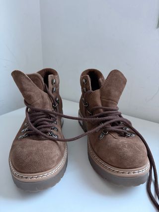Botas de montaña de ante en color marrón. Perfectas para senderismo o uso diario. - Cierre con cordones. - Suela gruesa y resistente. - Detalle de pespuntes en la suela.