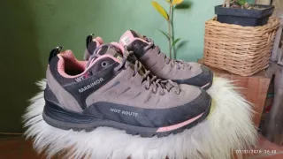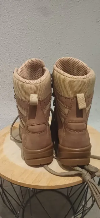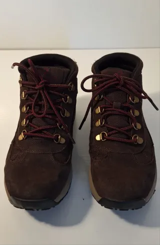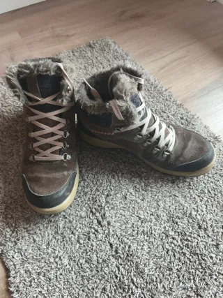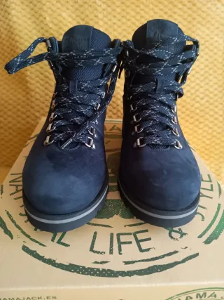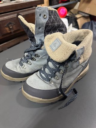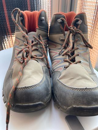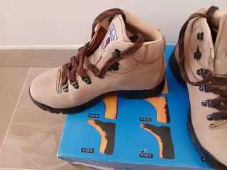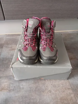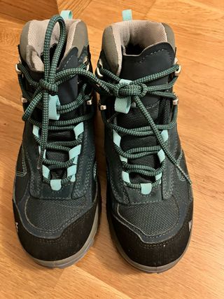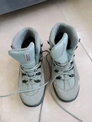 Botas de montaña de caña alta, perfectas para senderismo y actividades al aire libre. - Cierre con cordones. - Suela de goma. - Diseño resistente. He usado dos veces, pero hace tiempo que estaban guardadas. Las compré para ir a Andorra, y no la pusó más.