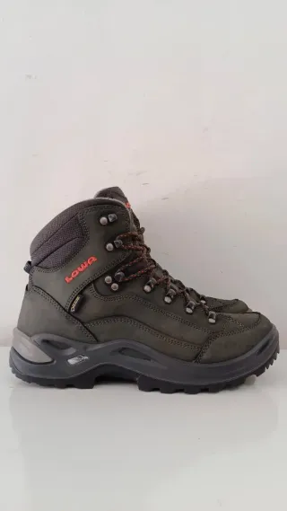 Botas de montaña Lowa Renegade GTX Mid WS Gore-tex impermeables, Suela vibram en color verde oscuro y detalles multicolor. - Diseño robusto y duradero. - Cordones con detalles naranjas. - Logo de la marca en la lengüeta.
