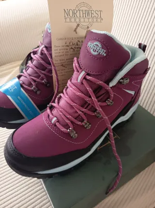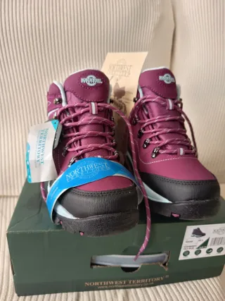 Botas de montaña Northwest Territory en color morado y negro. Perfectas para senderismo y actividades al aire libre. - Cierre de cordones. - Detalle de logo en la lengüeta. - Suela de goma. - Materiales resistentes. Totalmente impermeables. En una suela robusta que las hace comodísimas Número 38 europeo o 5 en UK.