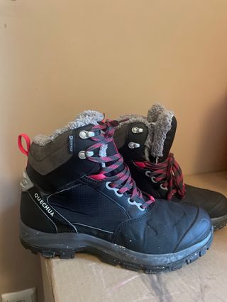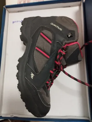 Botas de montaña Quechua, ideales para senderismo. - Exterior de ante y tejido. - Forro interior de pelo sintético. - Suela de goma. - Cierre con cordones. - Resistentes a agua Recogida en Sant Boi de Llobregat o envío.