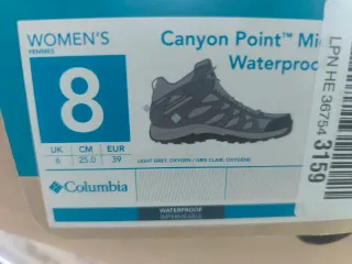 Botas de montaña Columbia Canyon Point para mujer. - Modelo: Canyon Point Mid Waterproof. - Color: Gris / Oxygen. - Talla UK: 6. - Talla CM: 25.0. - Impermeables.
