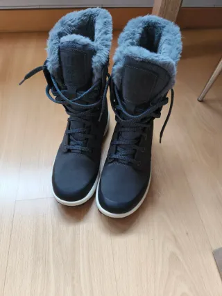 Botas de nieve Decathlon en color gris, modelo 500 Ultra Warm. Utilizadas una sola vez para subir a la nieve de la montaña Palentina. Es un 42 porque talla pequeña, pero realmente es un 41. A estrenar. - Diseño con forro interior de pelo sintético. - Cordones de ajuste. - Detalle de logo en la lengüeta.
