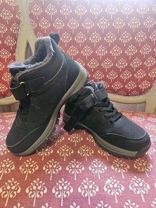 Botas de montaña para niño, talla 36, color negro. Son ideales para el invierno. - Forradas en tejido cálido y suave. - Suela resistente y antideslizante. - Cierre con velcro para un ajuste fácil.
