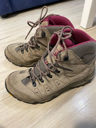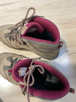 Botas de montaña en color marrón y rosa, talla 38. Perfectas para senderismo y actividades al aire libre. Están en muy buen estado, pero me quedan pequeñas. Si tienes alguna duda o quieres fotos de algo en específico no dudes en escribirme!